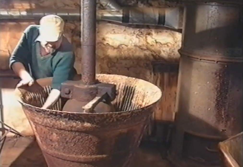 The leaf and stalks would first be dried out by laying it out in a heated floor and turning it. Then it would be taken into the mill and ground down using metal balls in the rotating drum mill. After that the snuff would be sieved and then depending on the type of snuff being made, ground further using pestle and mortars.