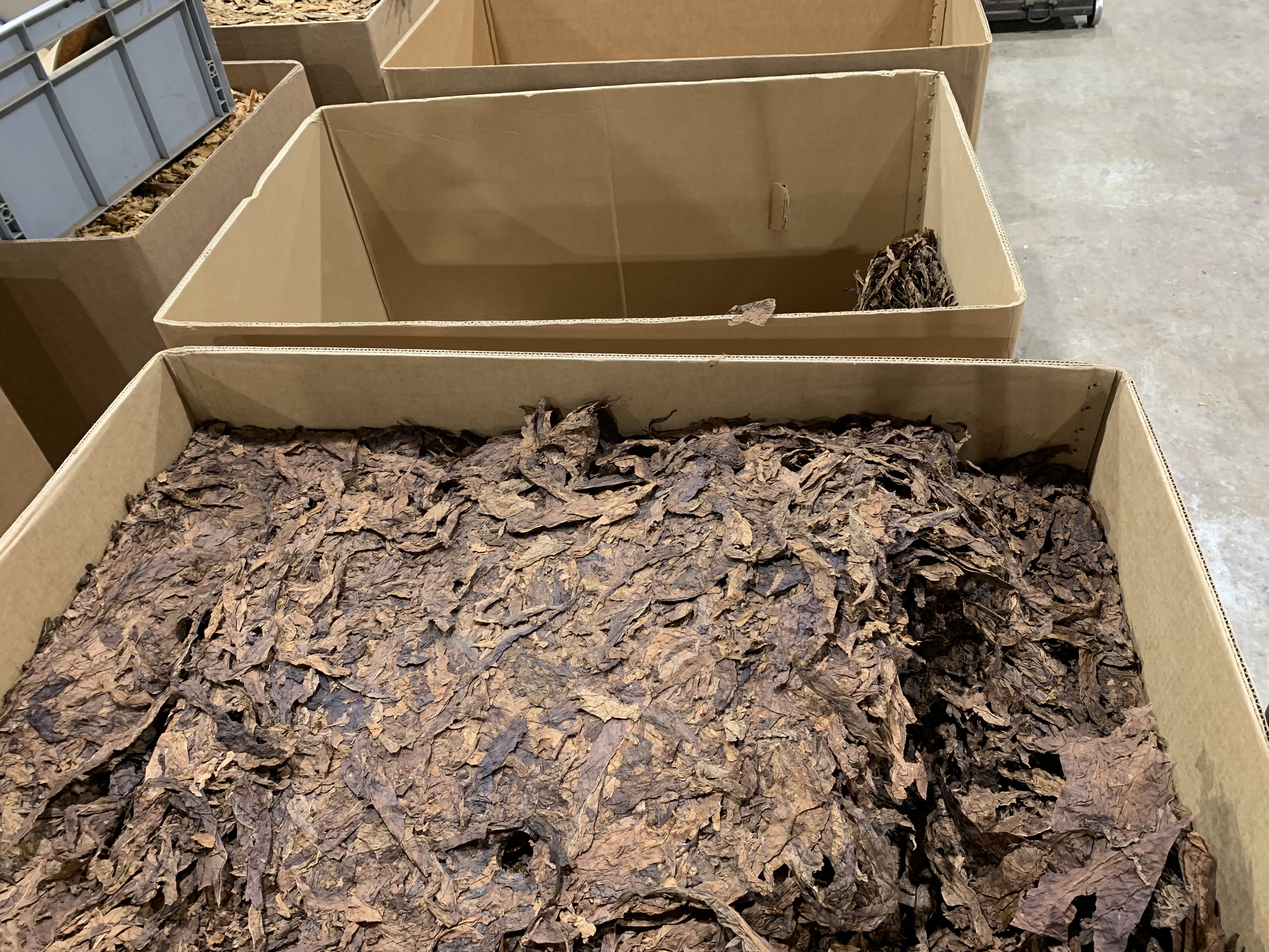 The majority of leaf used in Gawith tobacco blends comes from India and Brazil. First the dried leaf is conditioned through a steaming process and then left to rest overnight. Different amounts of leaf varieties are blended together depending on the particular tobacco blend being produced.
